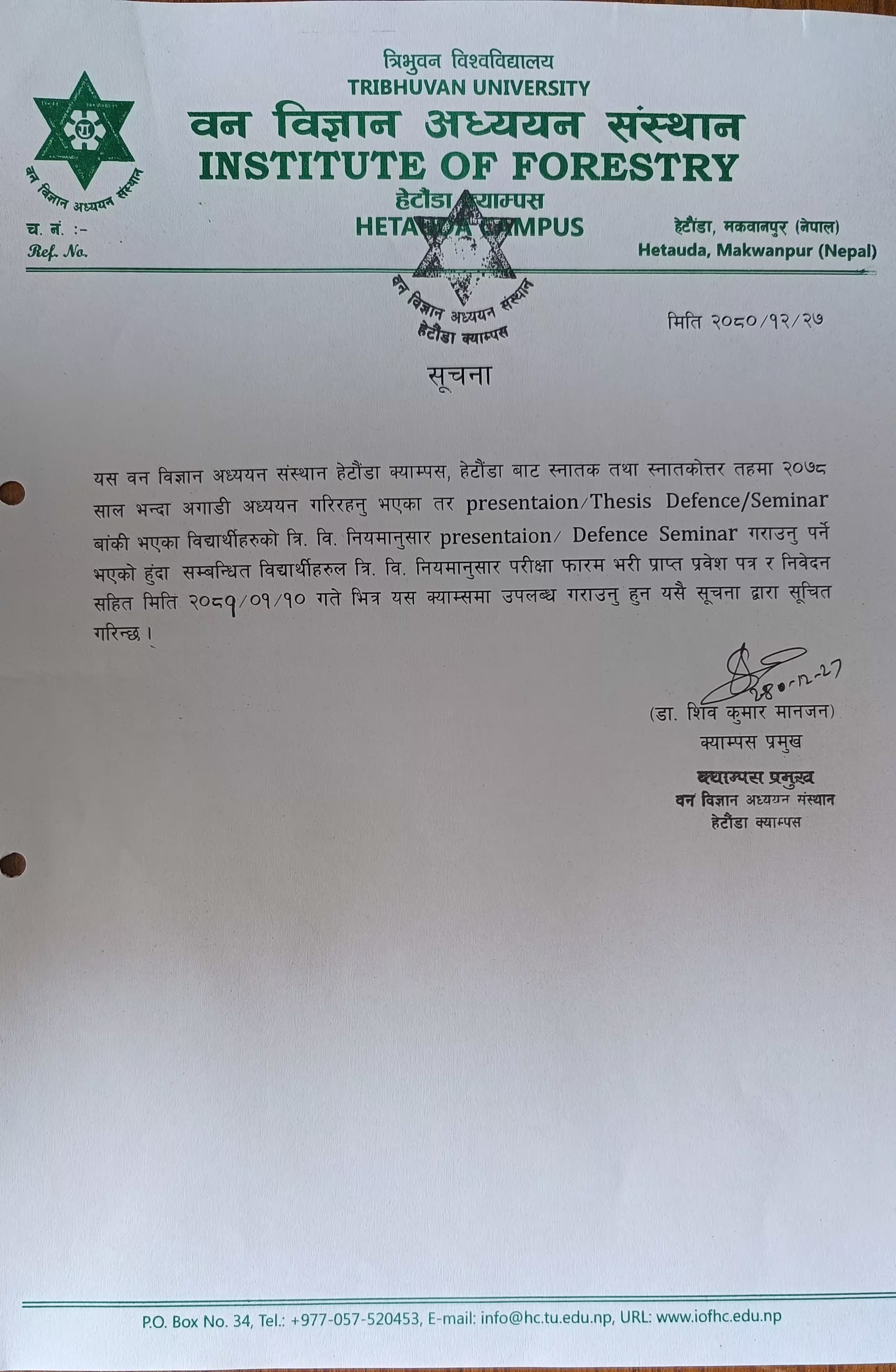 Institute of Forestry, Hetauda Campus