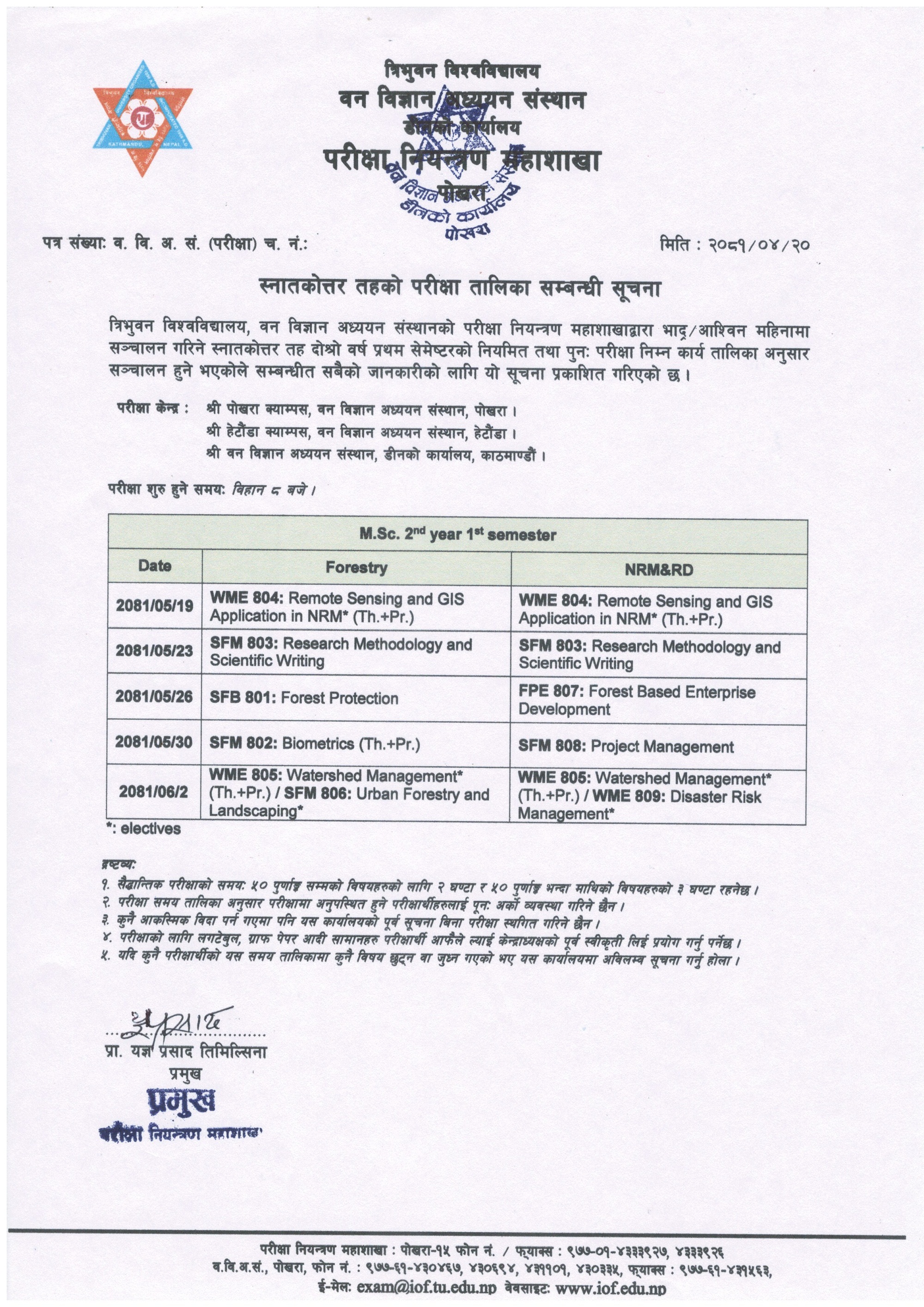 M.Sc. 2nd Year 1st Semester Regular and Back Exam Routine Bhadra, 2081