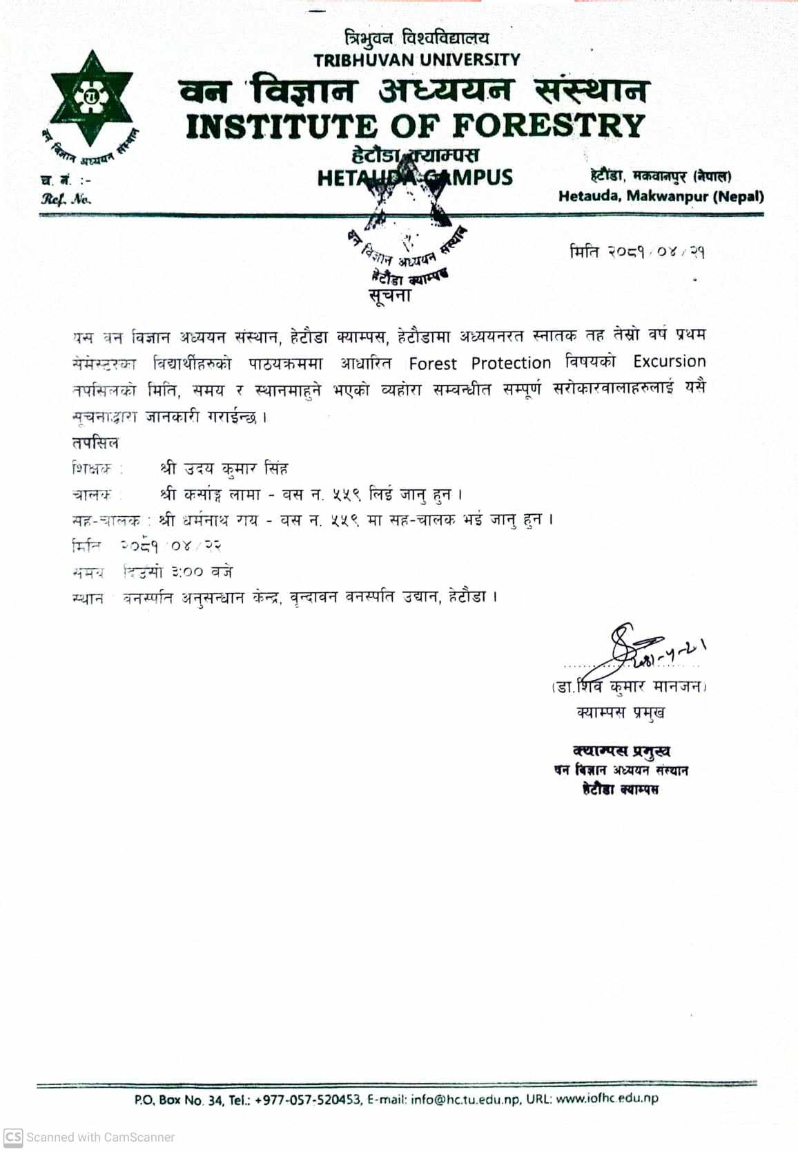 Excursion Notice of B.Sc. Forestry 3rd Year 1st Semester