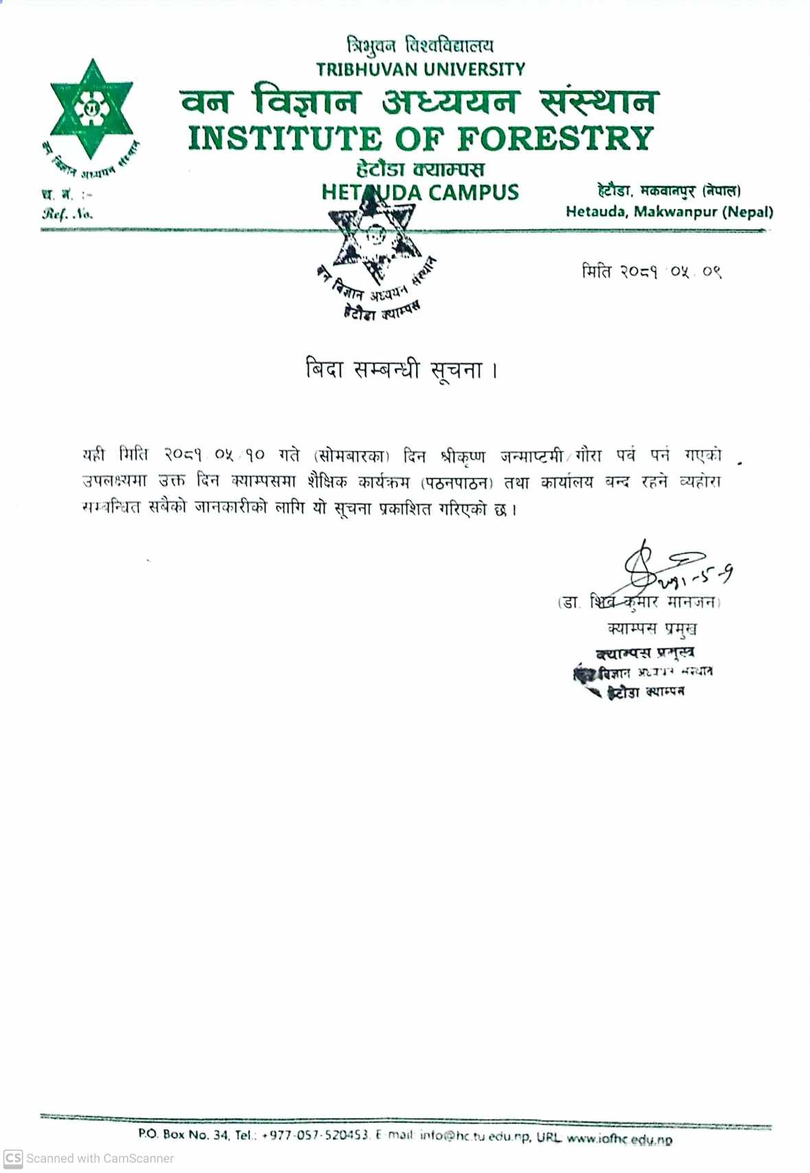 बिदा सम्बन्धी संशाेधित सूचना !!!