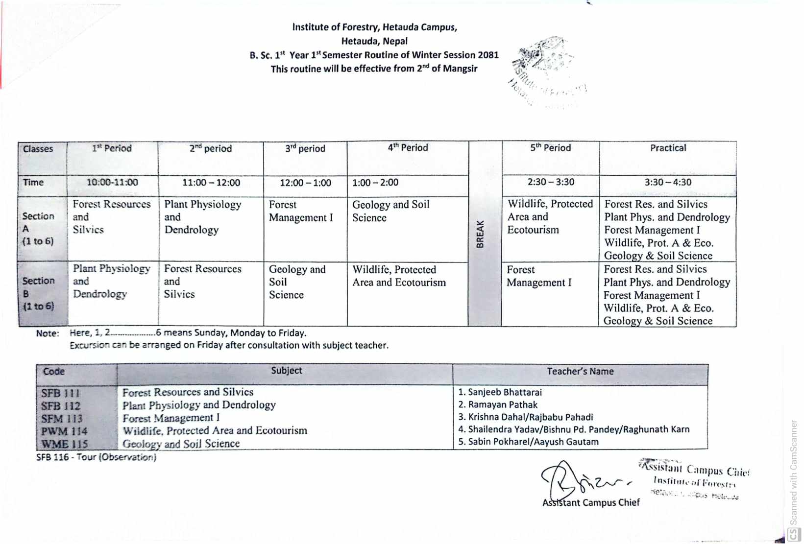 B.sc 1st Year 1st Semester Class Routine 2081