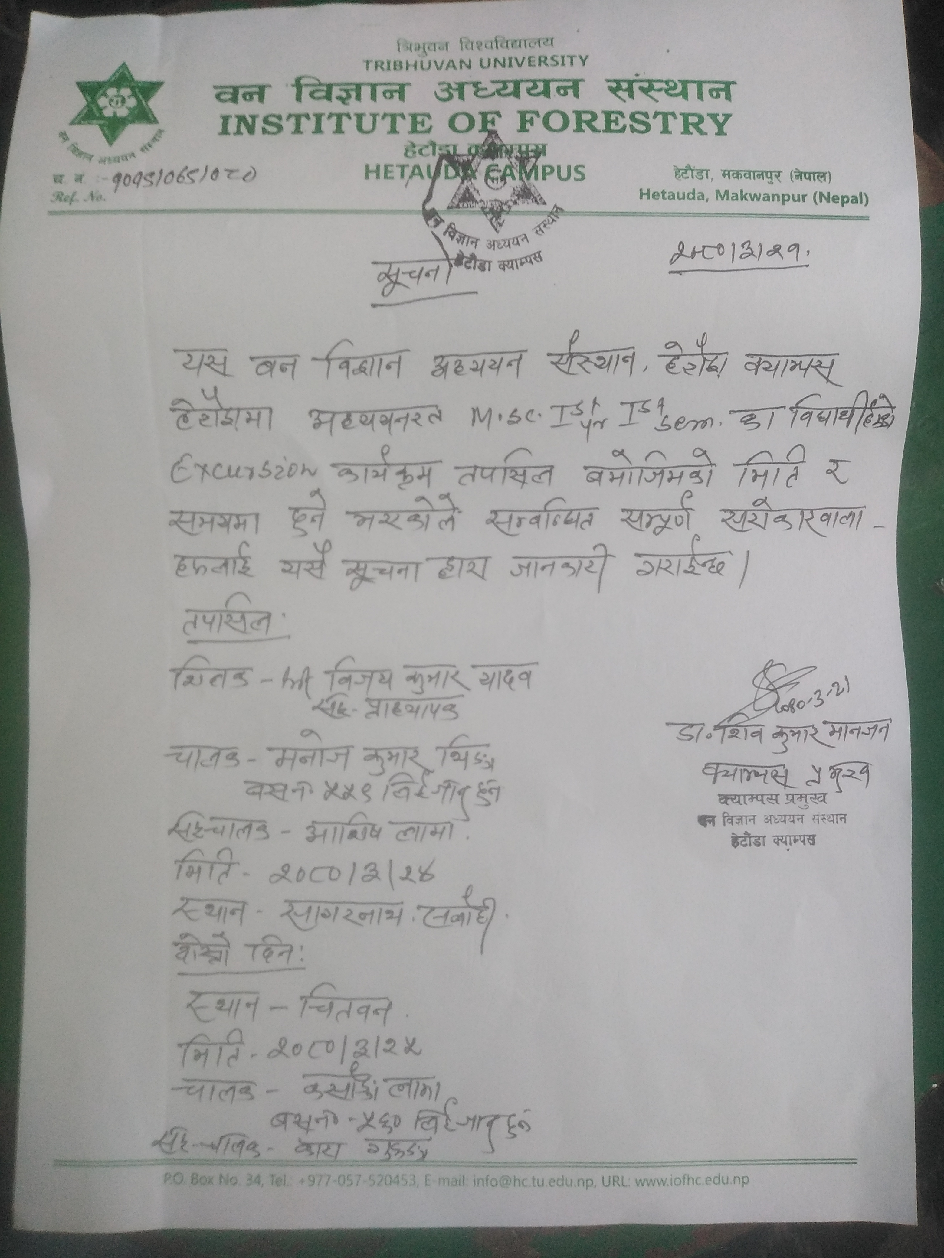 Excursion Notice M.Sc 1st Year 1st Semester Excursion Notice