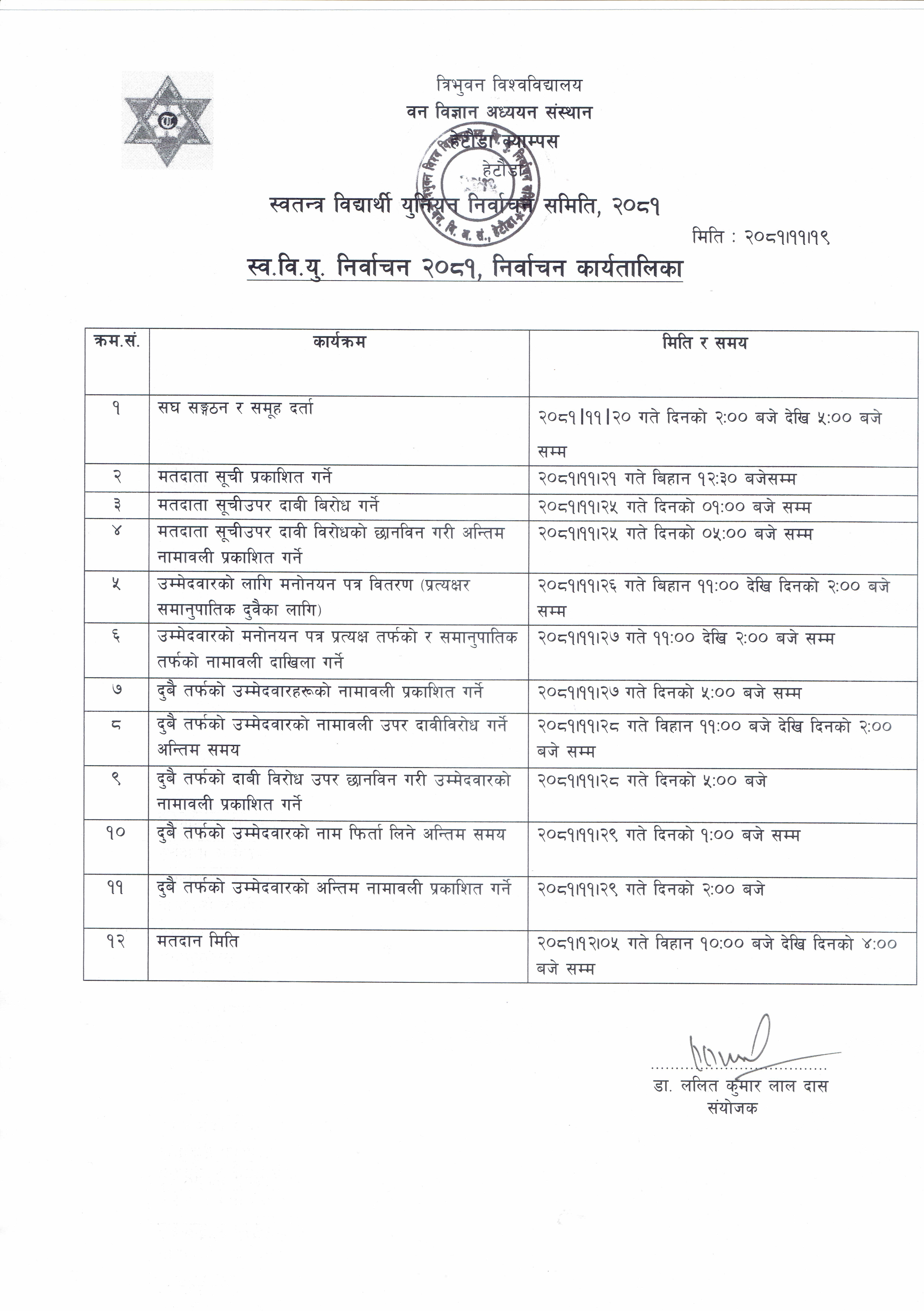 स्व.वि.यु. निर्वाचन २०८१, निर्वाचन कार्यतालिका !!!