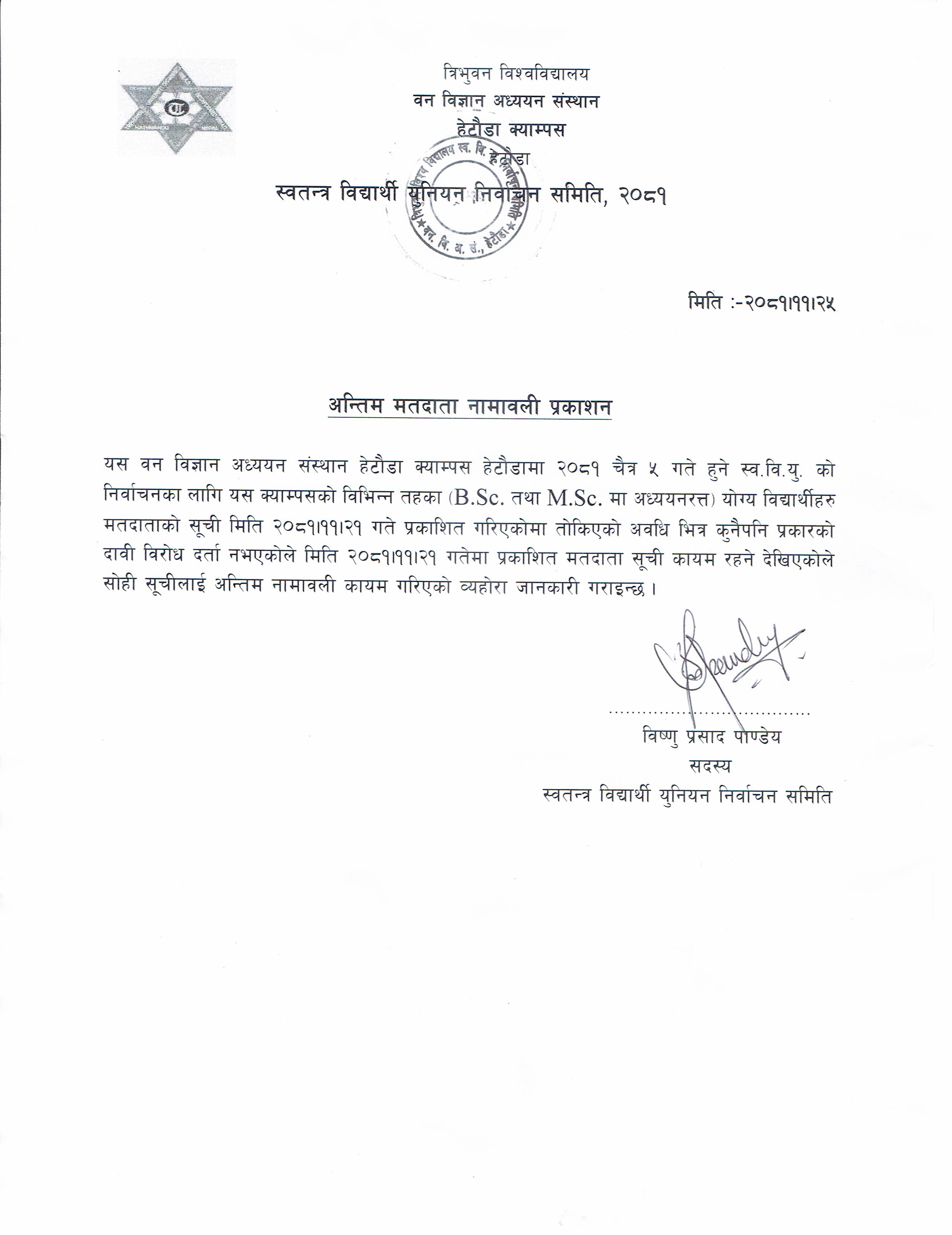 अन्तिम मतदाता नामावली प्रकाशन सम्बन्धी सूचना !!!