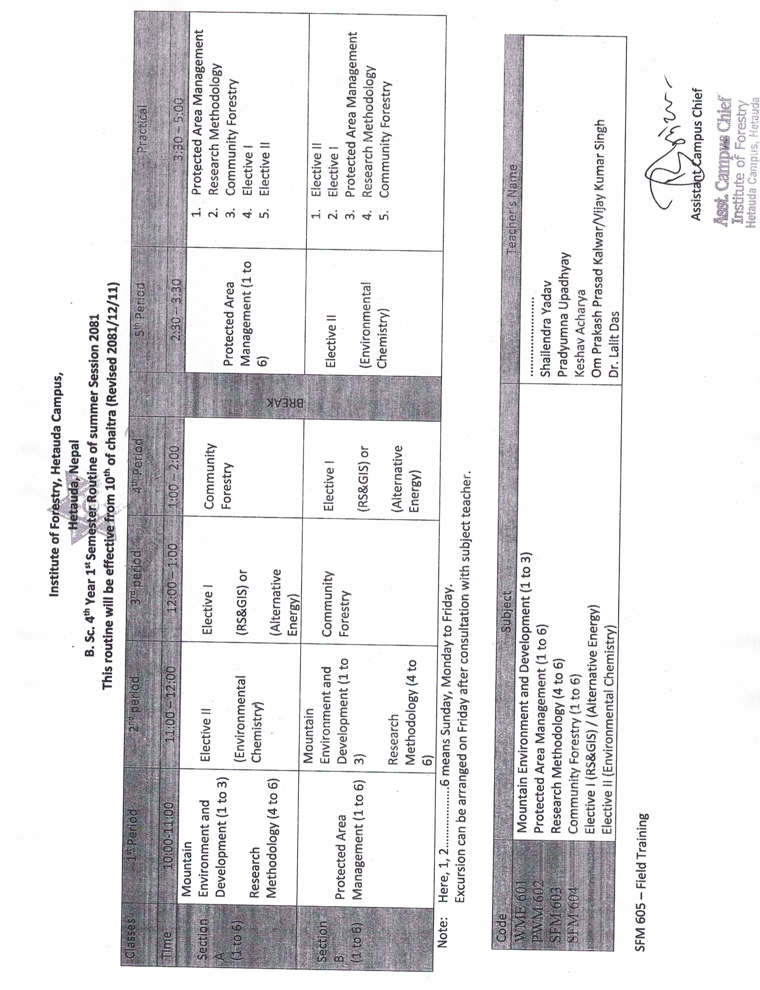 B.Sc. 4th Year 1st Semester Class Routine 2081