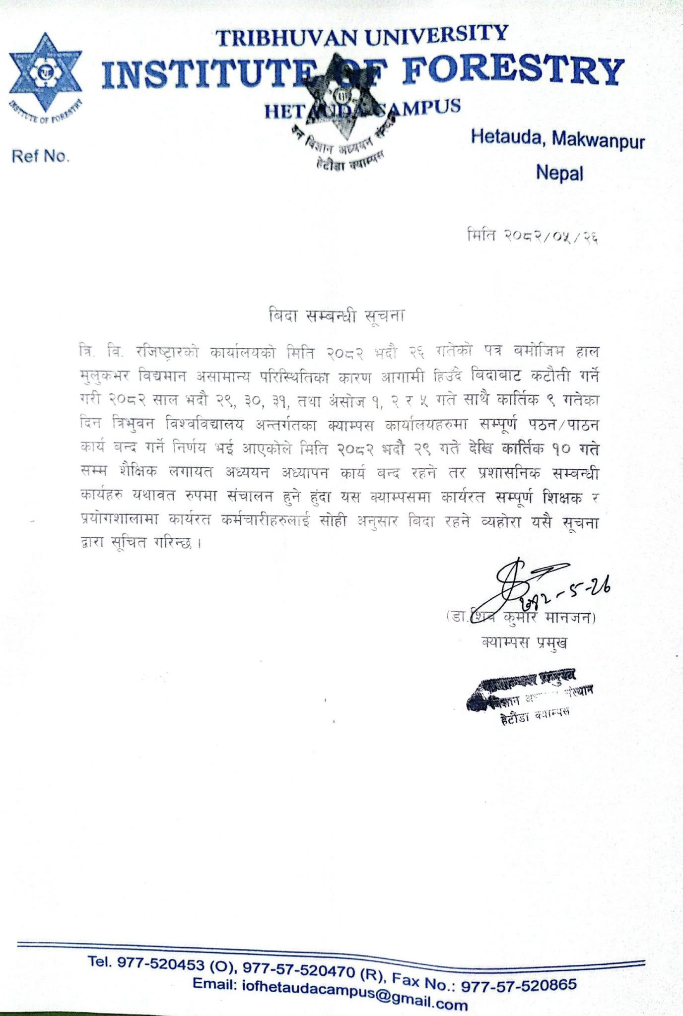 बिदा सम्बन्धी संशाेधित सूचना !!!