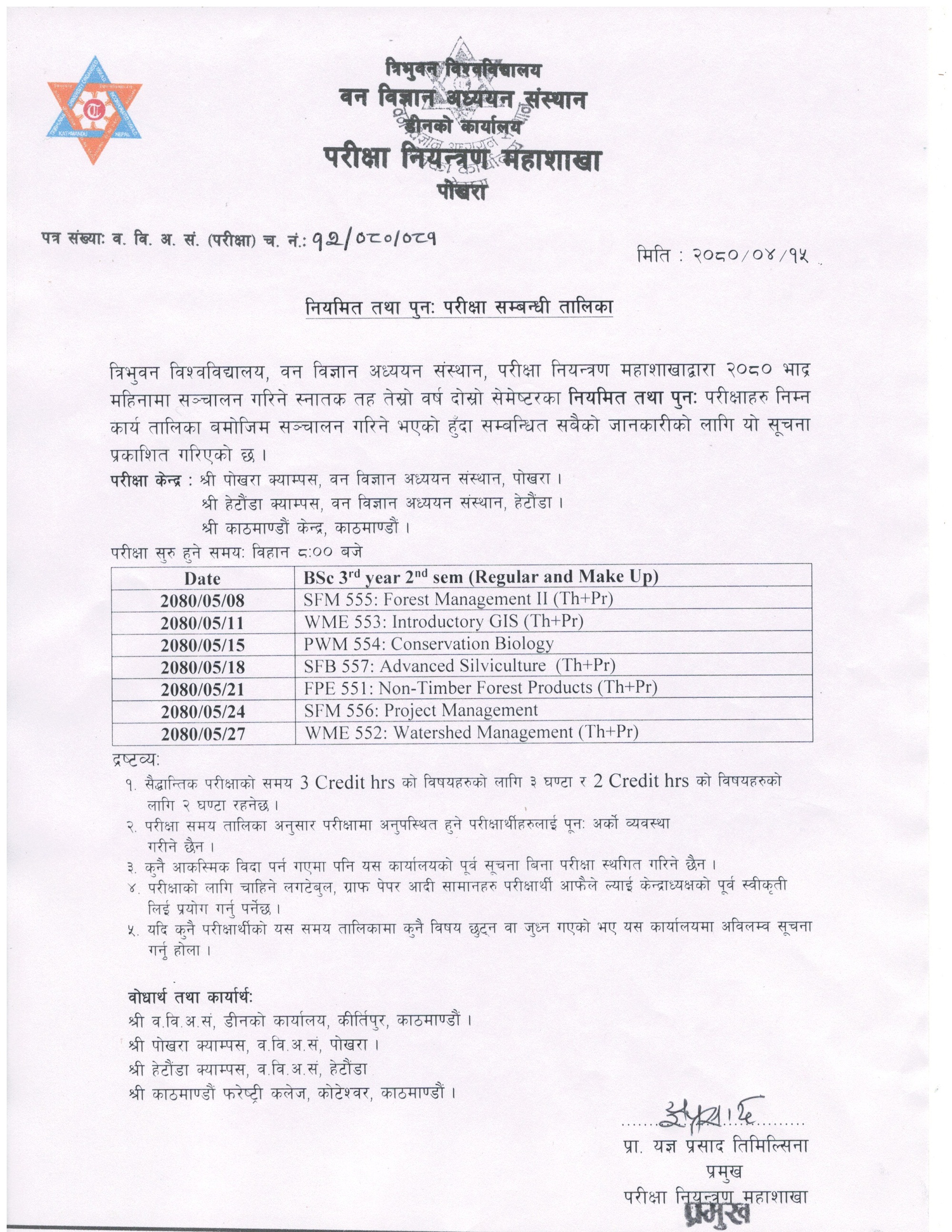 B.Sc. 3rd year 2nd sem. Routine Published (2080/04/15)